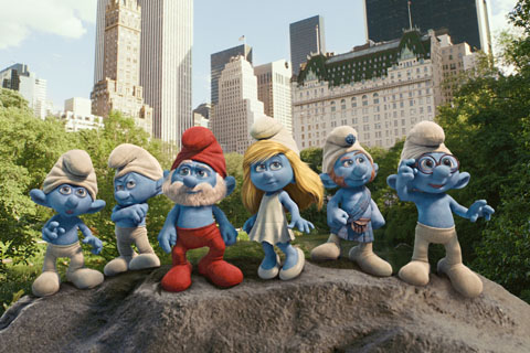 La película contiene publicidad, de marcas como McDonald's, M&M, LEGO, Google y Wikipedia. También fue criticada por la constante aparición de banderas estadounidenses durante la mayor parte del film, y la inclusión de una "Estatua de la Libertad", con la Pitufina como modelo, al final de la película.